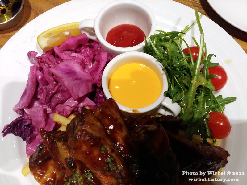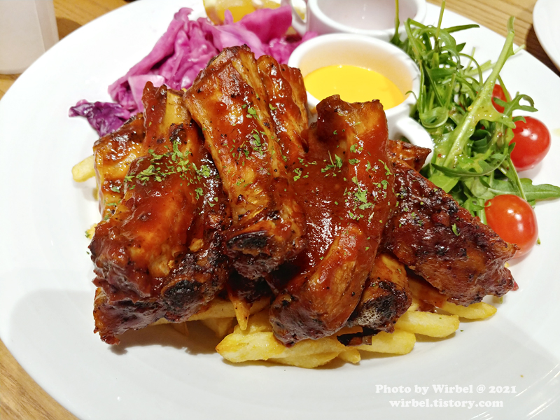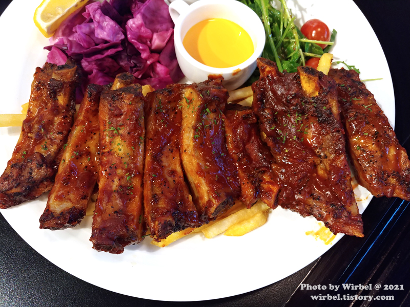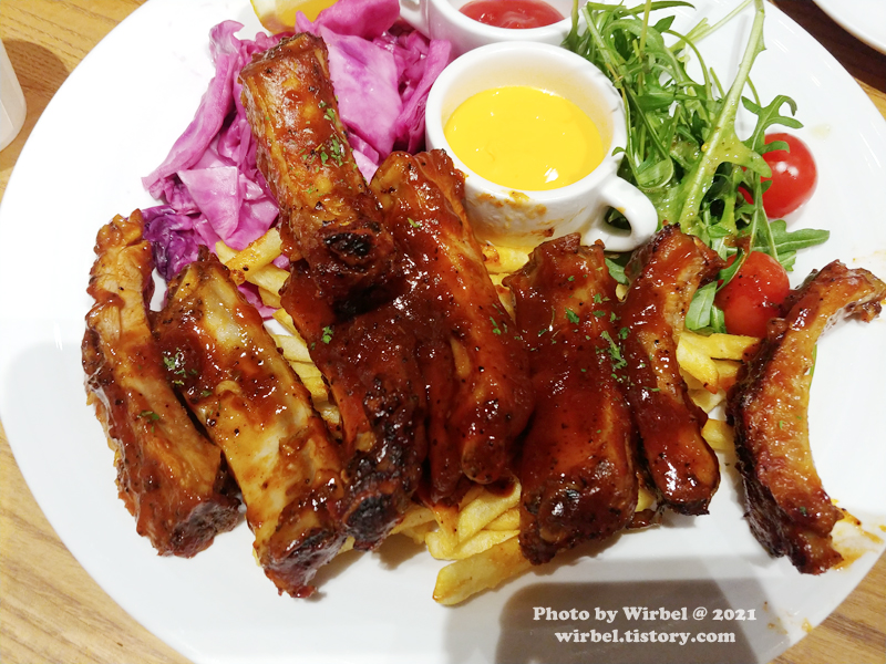 바비큐폭립은 개인적으로 말랑말랑한 스타일을 좋아히지만 약간 탱탱한 스타일입니다.