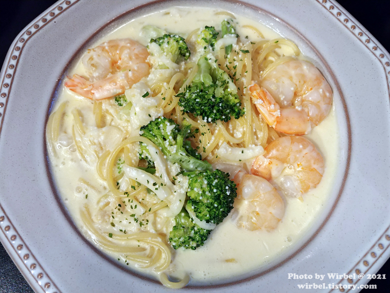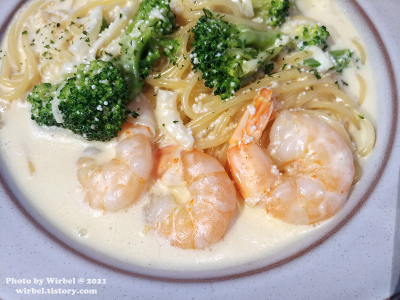 탱탱한 새우와 브로콜리가 넉넉하게 있습니다.