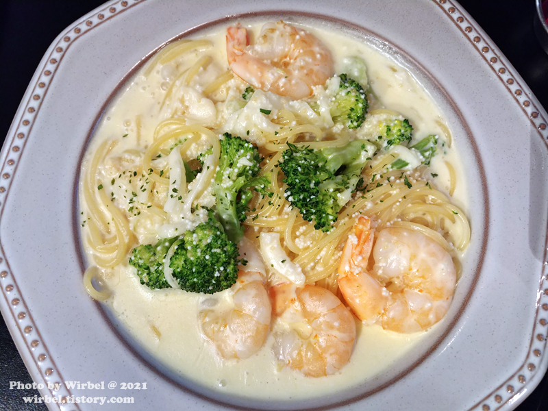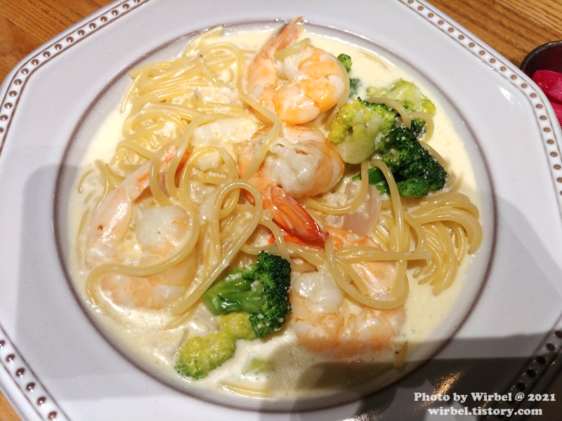 새우가 들어가 있는 파스타를 주문해줍니다.