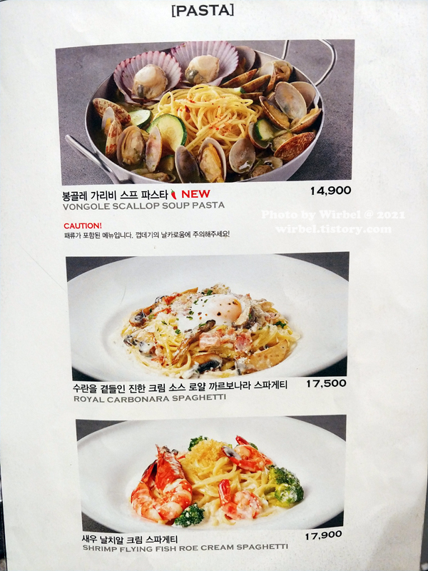 <새우 날치알 크림 스파게티>, 가격: 17,900원.