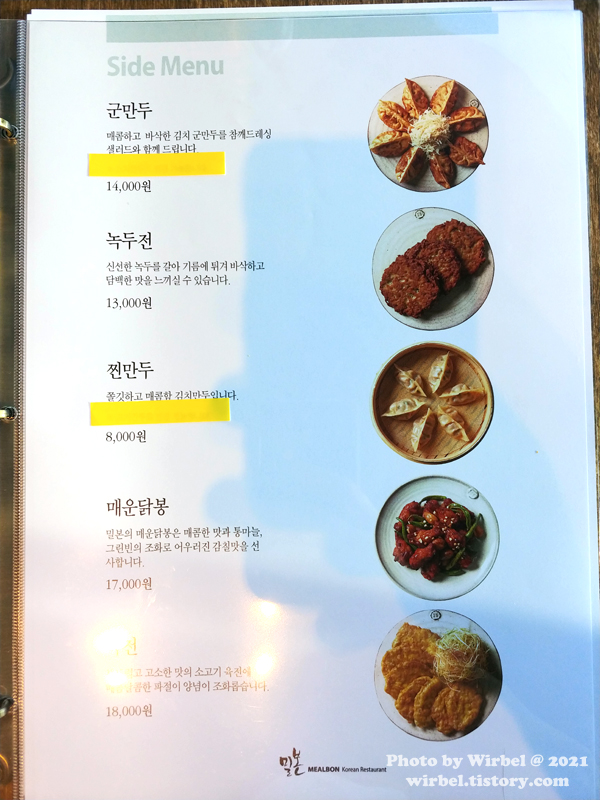 밀본 메뉴.