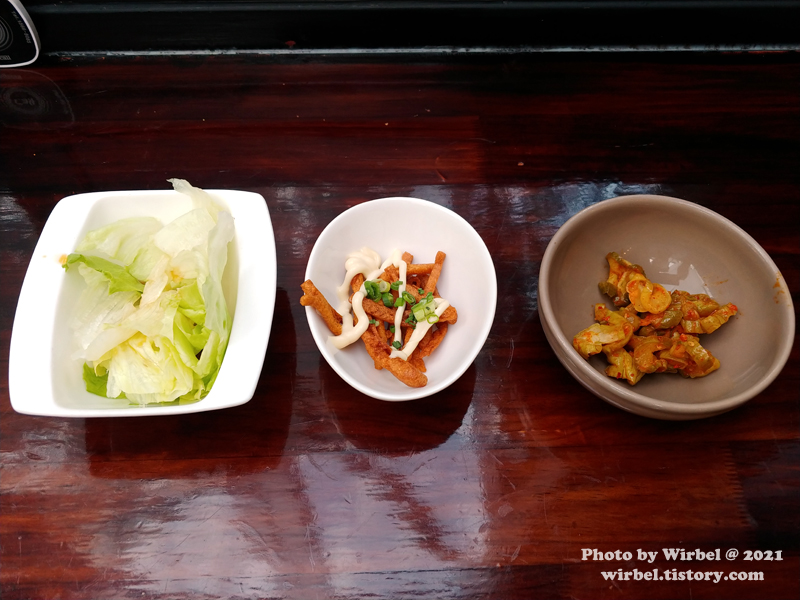 상호처럼 오이지가 나오는데 매콤하게 잘 무쳐졌습니다.