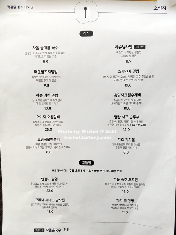2021년 9월 오이지 대학로 본점 후기 https://wirbel.tistory.com/237