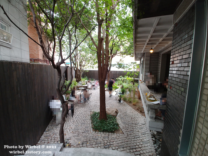 어프로치는 주택을 개조한 것으로 작은 정원이 있어서 이색적인 분위기가 있습니다.