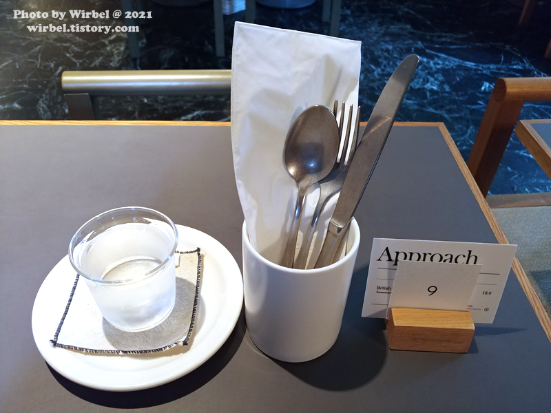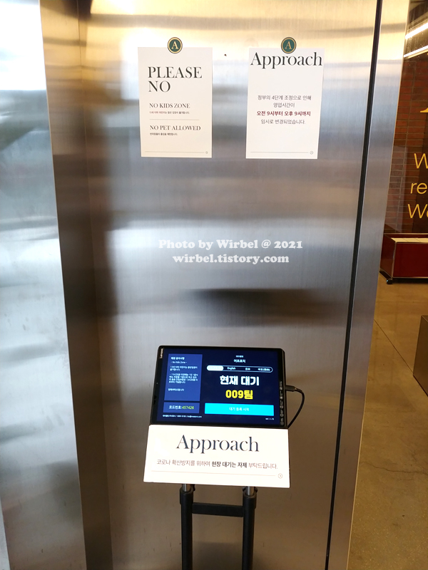 어프로치는 테이블 안내를 받은 후 출입구에 있는 카운터로 가서