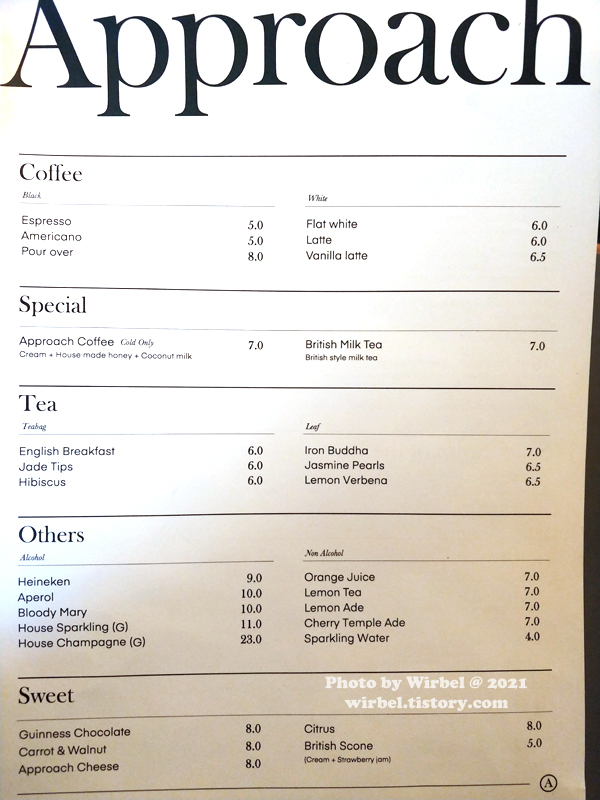 어프로치 드립바 커피 가격은 드립 커피라서 그런지 위층의 어프로치 커피보다 비싸군요.
