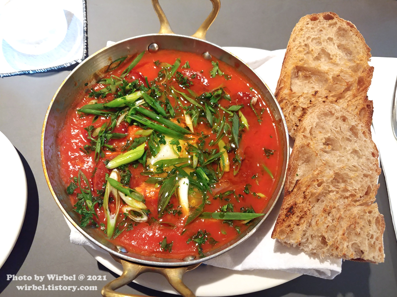 샥슈카를 같이 나오는 빵에 곁들여서 먹어봅니다.