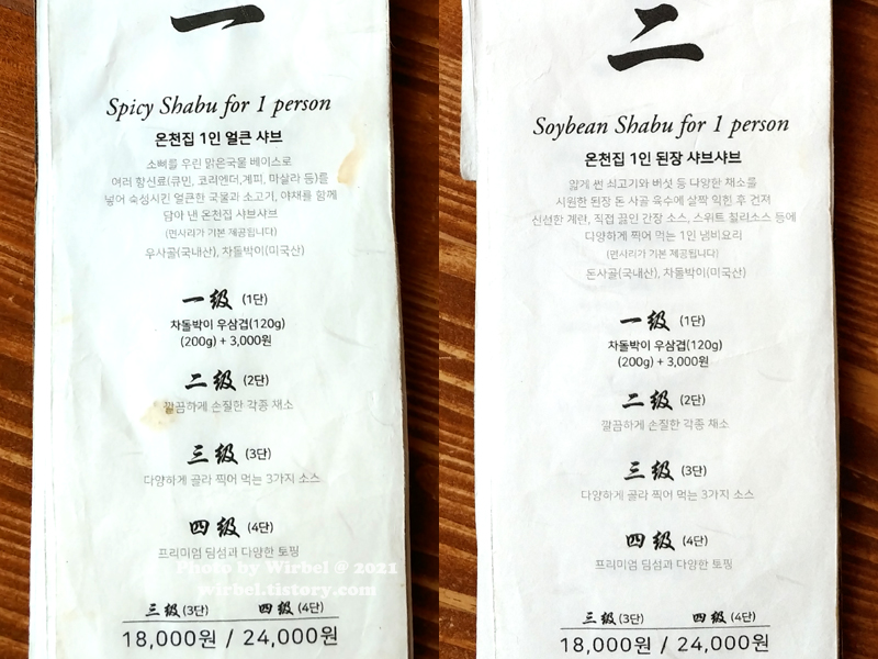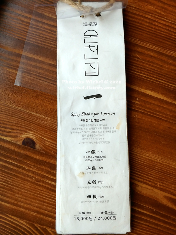 온천집 1인 얼큰 샤브 3단 18,000원 / 4단 24,000원.