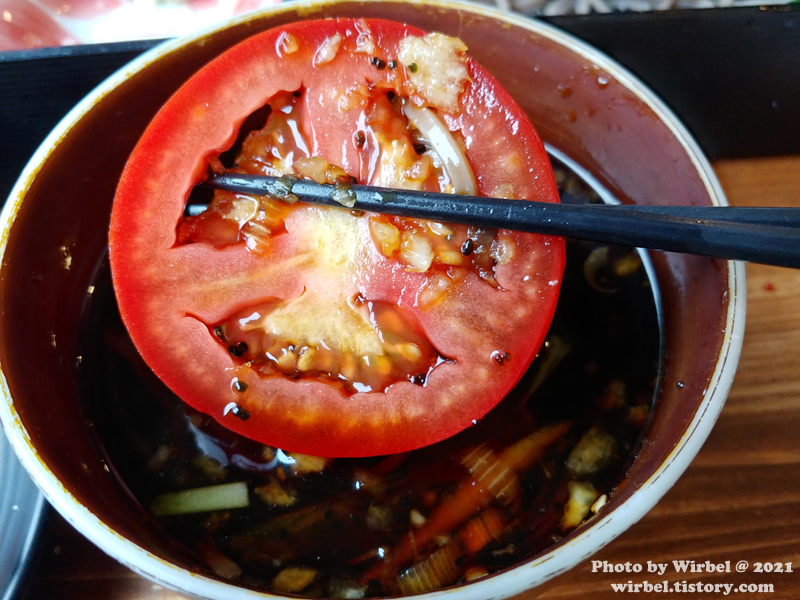 메밀을 토마토와 같이 먹는 것도 개성 있고 괜찮군요.
