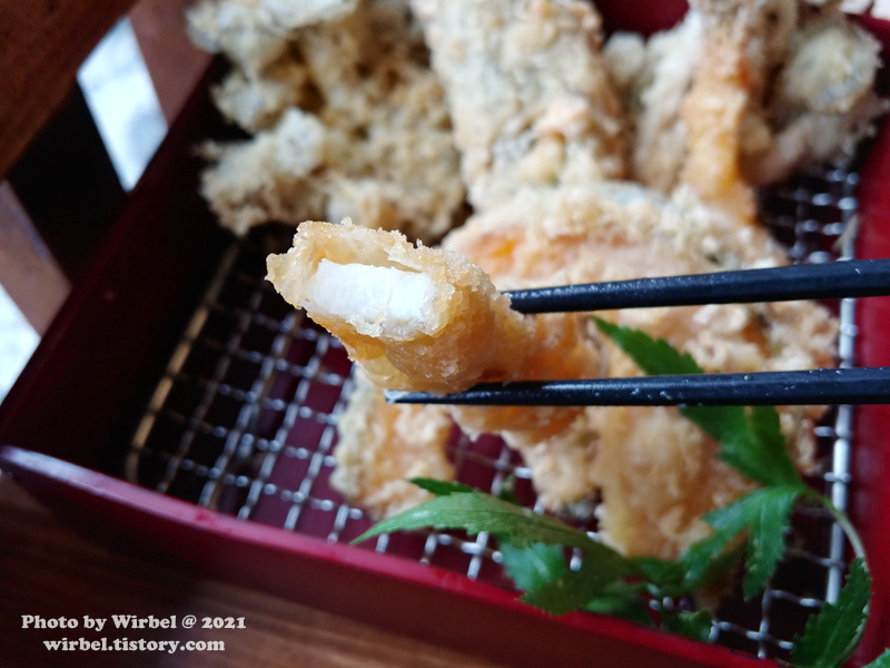 모듬튀김 중에서는 이 고추튀김이 가장 인상 남았습니다.