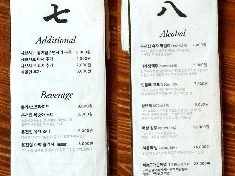 온천집 주류 가격.