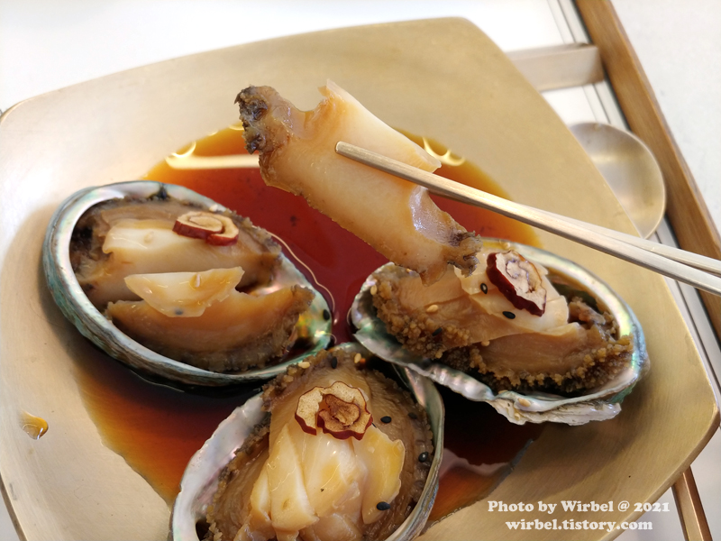 간장에 은은하게 절여진 쫄깃한 전복장입니다.