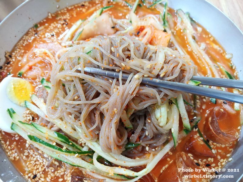 낙산냉면은 비빔냉면이지만 육수가 부어져서 나오는 스타일입니다.