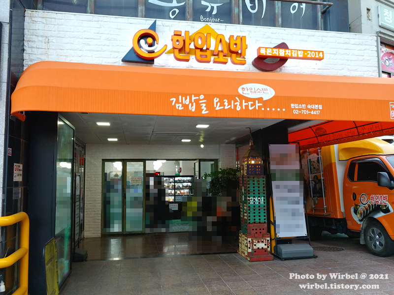 숙대입구역 맛집 <한입소반 숙대본점> 이제는 프랜차이즈 김밥 전문점으로 확장하고 있는 있는 한입소반입니다. 한입소반 본점은 2014년 천원김밥으로 개업했고 2018년에 한입소반으로 상호를 변