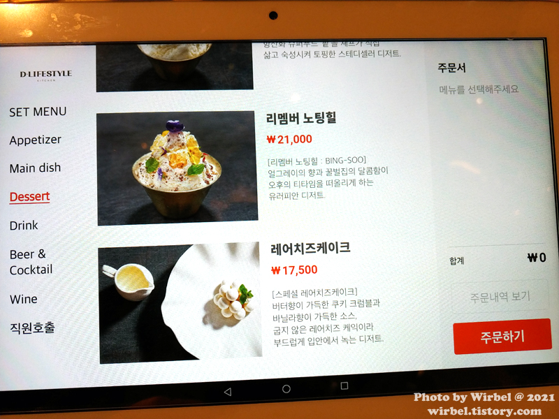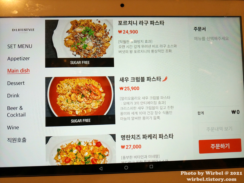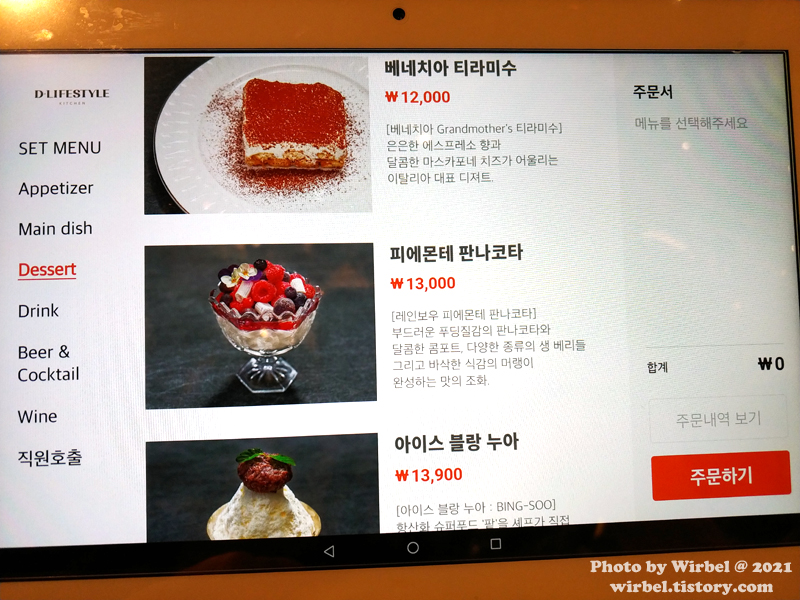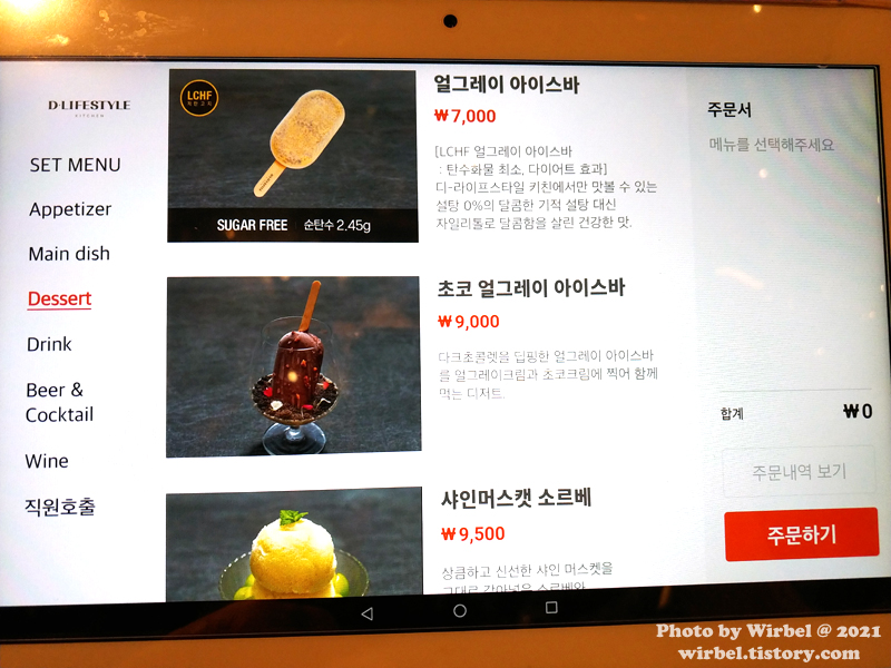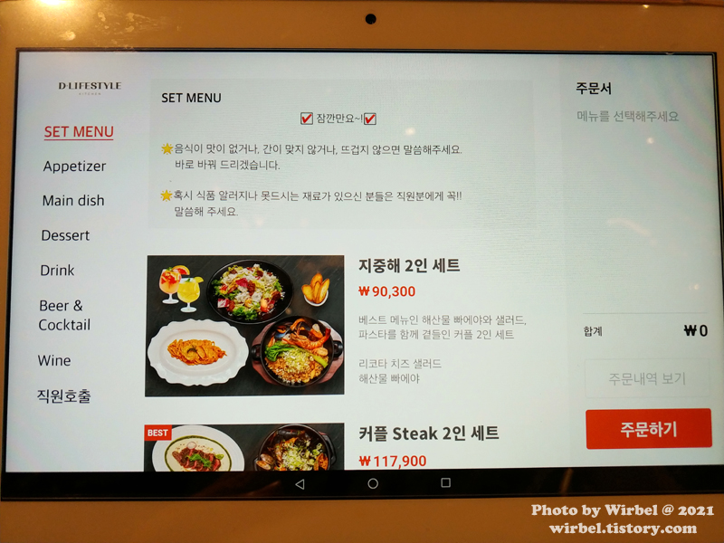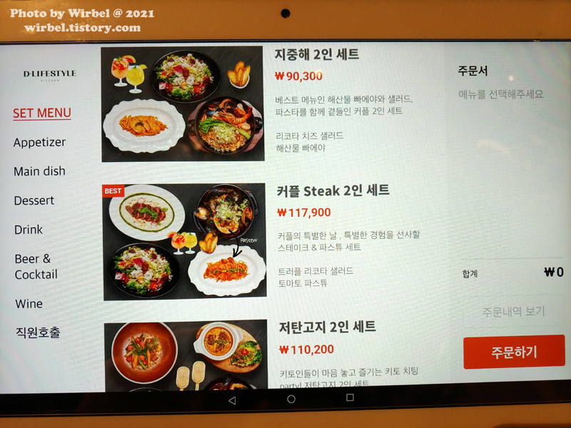 디라이프스타일키친은 태블릿으로 주문합니다.