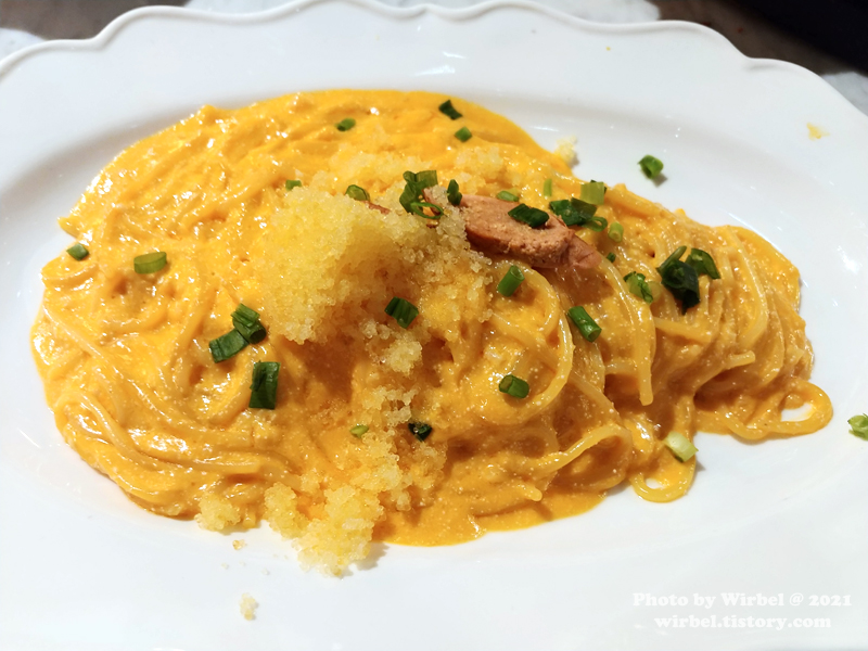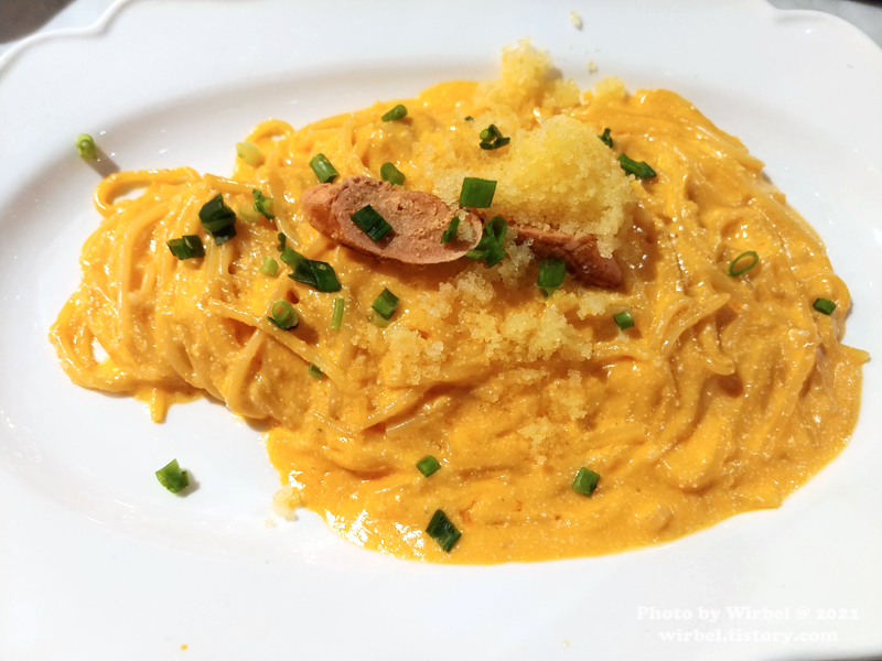 명품 크림 파스타와 짭짤한 명란의 환상 궁합.
