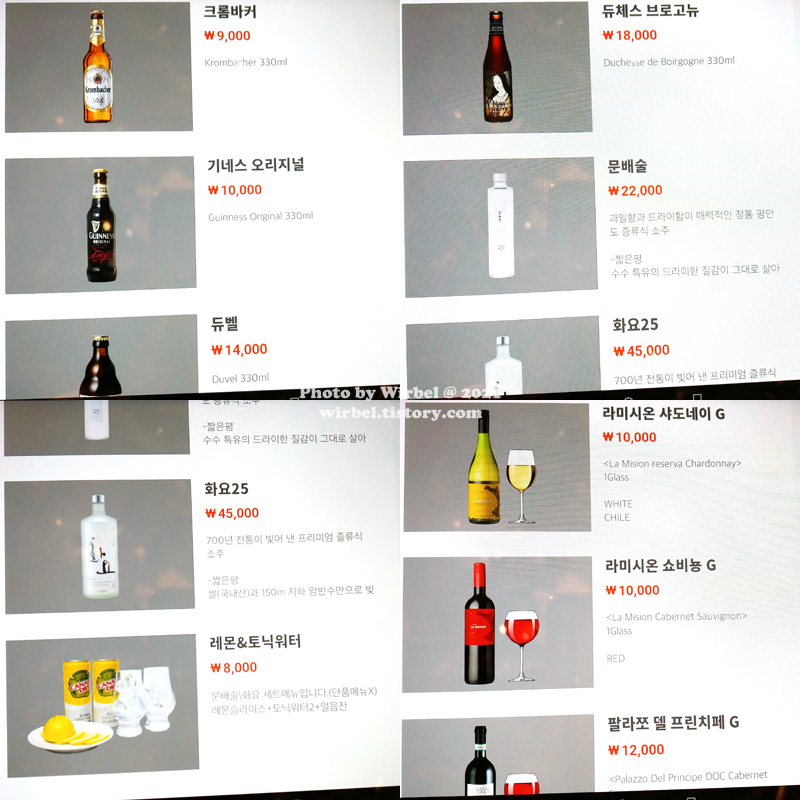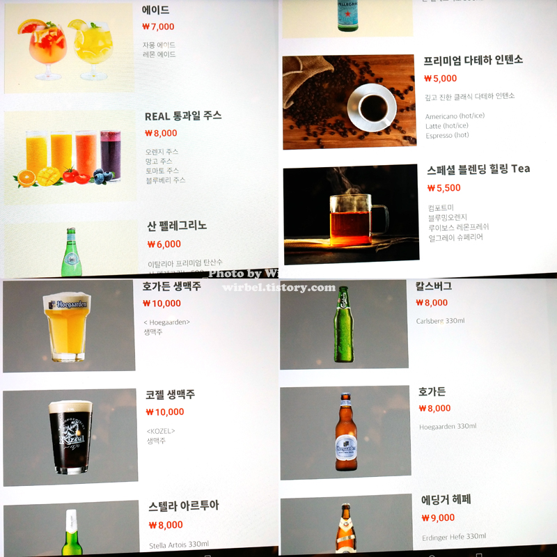 디라이프스타일키친 음료 주류 메뉴 가격.