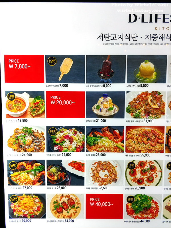 디라이프스타일키친 저탄고지 메뉴 가격.