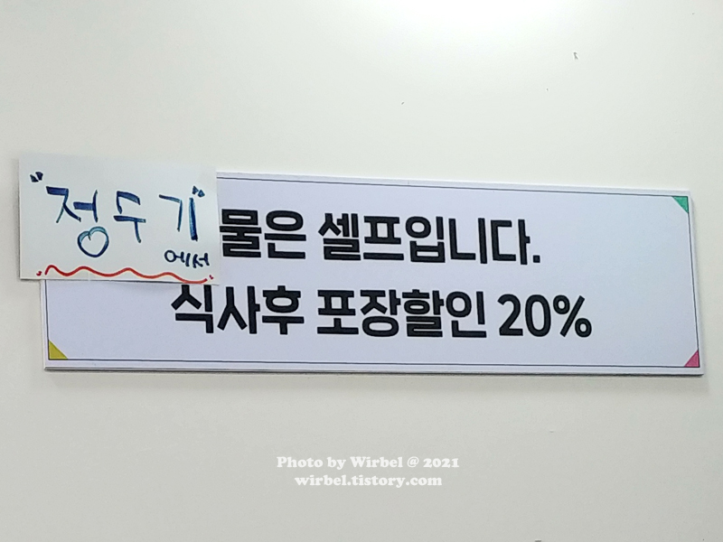 첫 번째는 생수를 주고 그 후에는 정수기 물 셀프입니다.