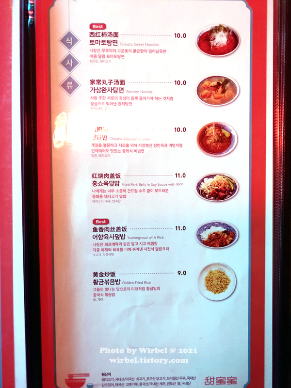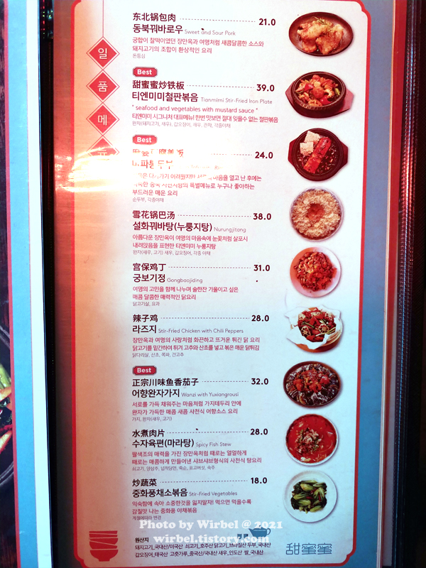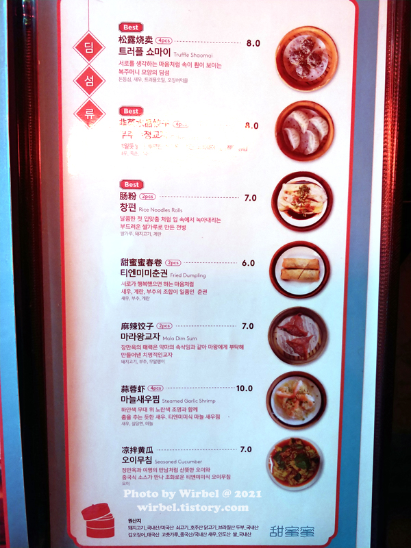 서촌 중식 맛집 티엔미미 메뉴.