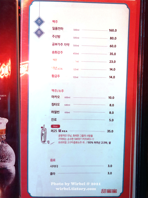 티엔미미 주류 음료 가격.