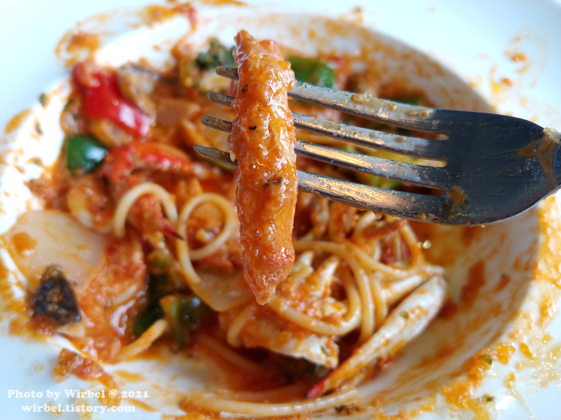 스푼피자에는 팬네 면이 들어가 있군요.