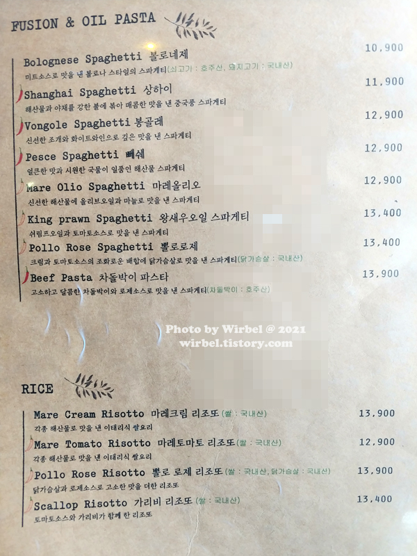 마레크림 스파게티 12,900원.