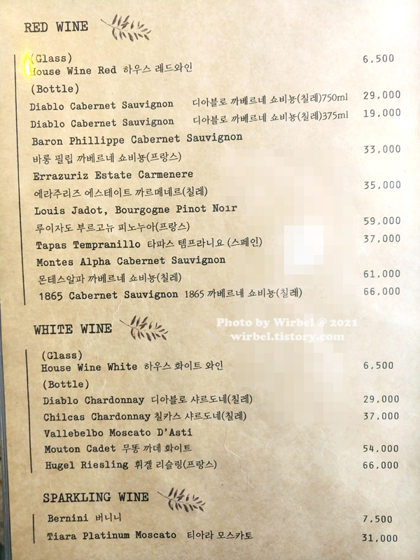 코벤트가든 와인리스트.