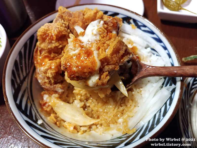 치킨이 메인 메뉴로 있기 때문에 보통의 가라아게 덮밥보다는 치킨의 상태는 좋습니다.