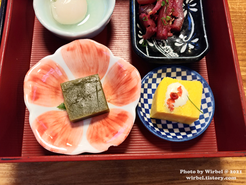녹차(?) 양갱, 달걀.
