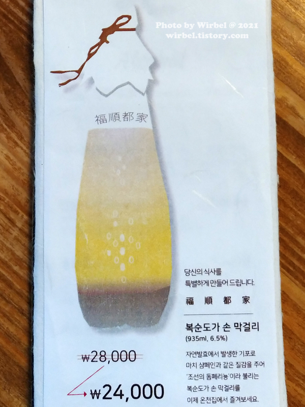 온천집 막걸리 할인 메뉴.