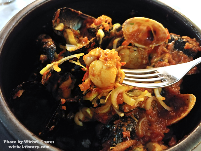 토마토 파스튜는 홍합찜과 파스타를 모두 맛볼 수 있는 일석이조로 디라이프스타일키친의 시그니처 메뉴입니다.