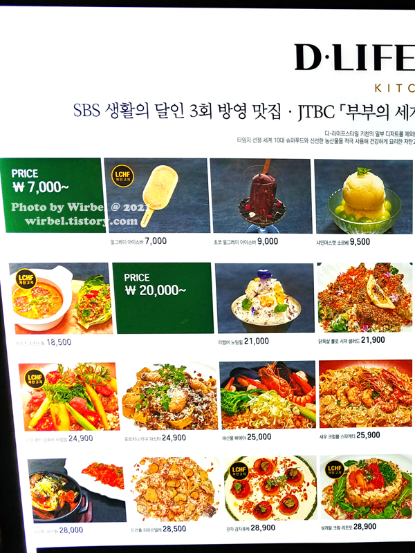 롯데월드몰 디라이프스타일키친 메뉴 가격.