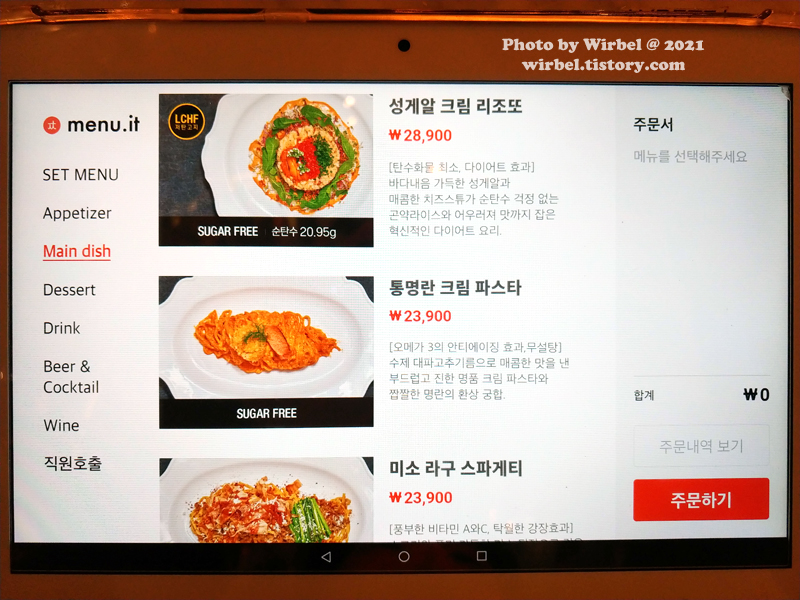 디라이프스타일키친 주문은 태블릿으로 하면 됩니다.