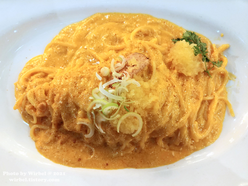 부드럽고 진한 명품 크림 파스타와 짭짤한 명란의 환상 궁합.