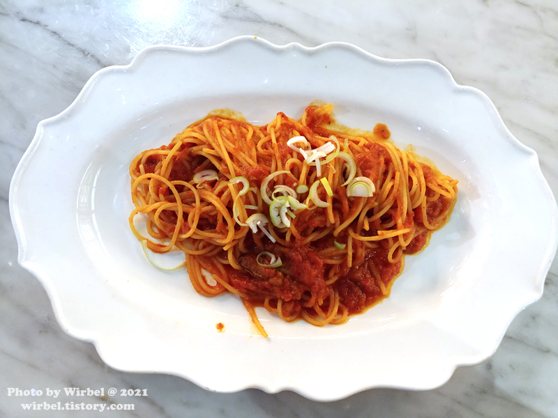 토마토 소스의 파스타 느낌이 나면서 맛이 좋습니다.
