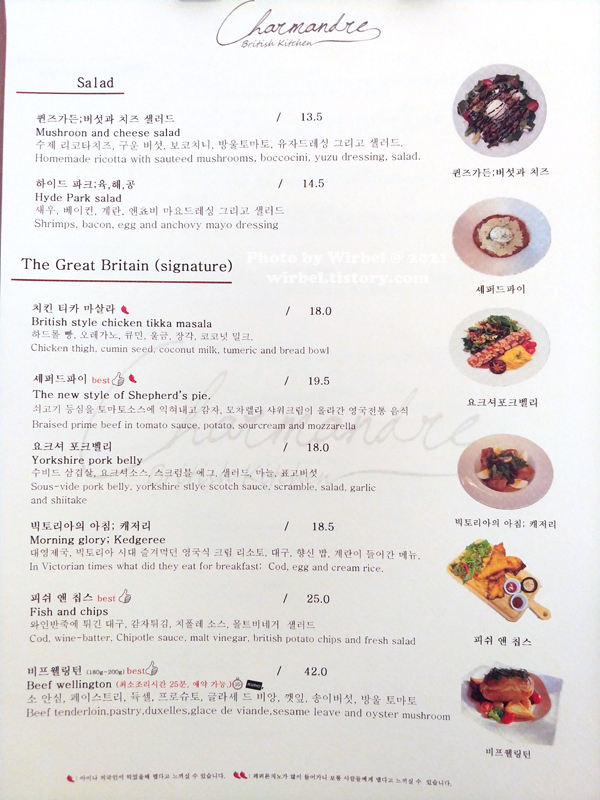 한줄평: 영국 음식을 만날 수 있는 곳! 방문 시기: 2021년 12월 이날 가격: 19,500원. 시그니처 메뉴: 셰퍼드파이 재방문의사: 비프웰링턴 맛이 궁금해서 방문할 것 같음 |