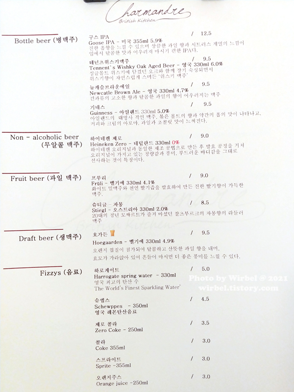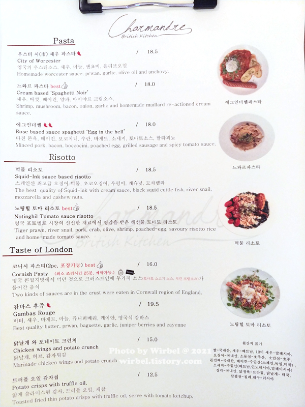 뚝섬역 브리티쉬 키친 차만다 메뉴 가격.