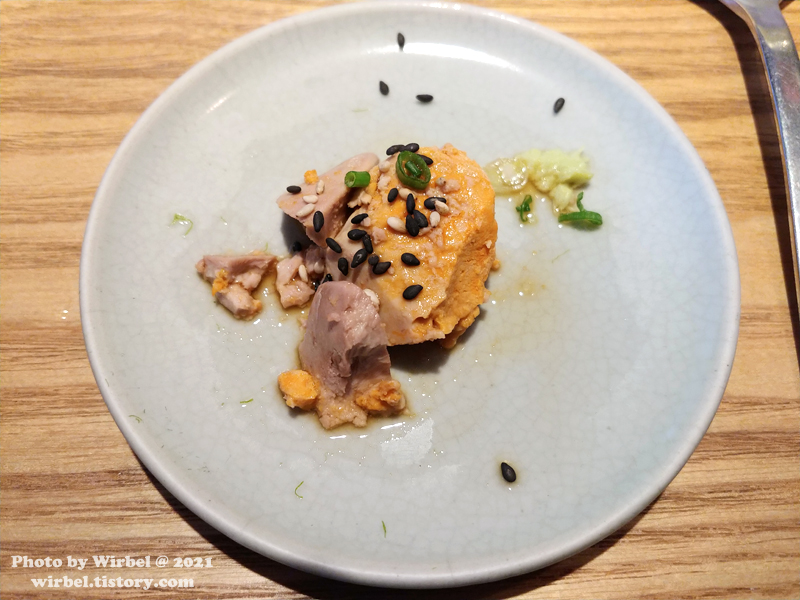 처음이니 먼저 덮밥처럼 살짝만 떠서 와사비를 곁들여서 먹어 봅니다.