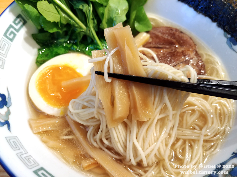 면은 얇고 시오 소스라서 전체적으로 담백한 편입니다.