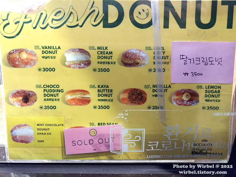 2022년 1월 기준 도넛 라인업입니다.