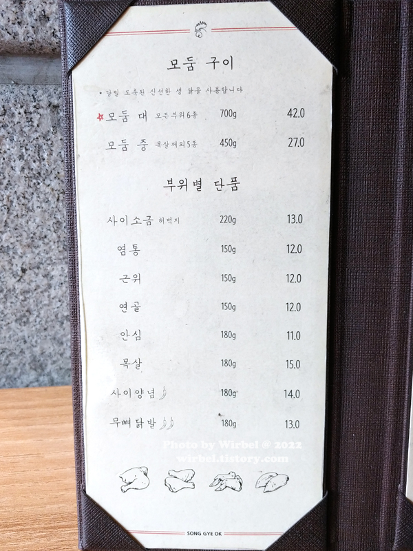 송리단길 닭특수부위 맛집 송계옥 메뉴 가격.