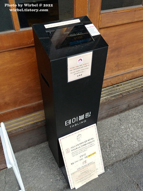 잠실 송계옥 웨이팅 시스템으로 테이블링(Tabling)을 사용하고 있습니다.