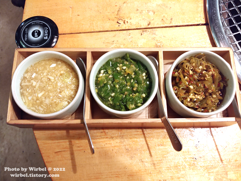 마늘소스, 유자고추, 고추 양념도 나옵니다.