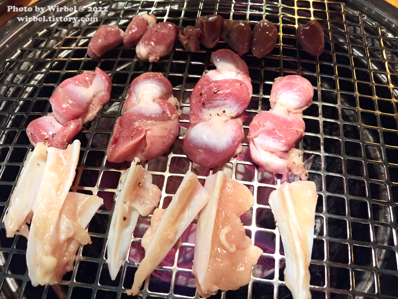 먼저 근위, 염통, 연골 순서로 구워줍니다.