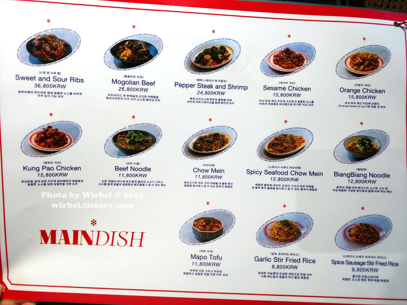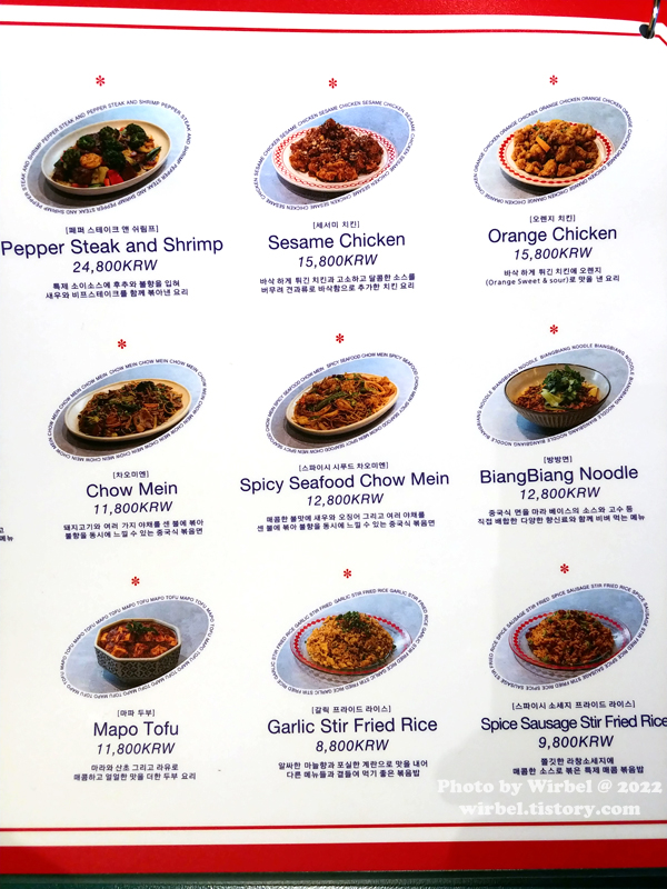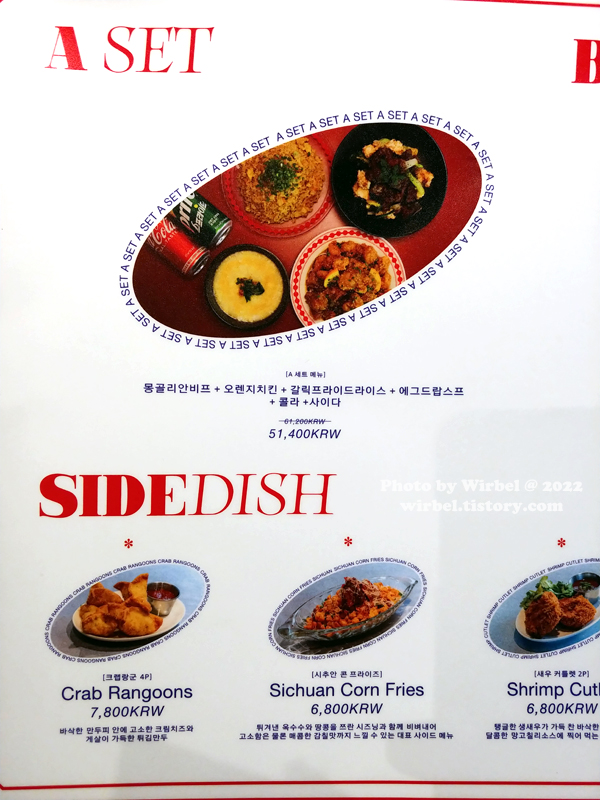 청담동 아메리칸 차이니즈 웍셔너리 메뉴.