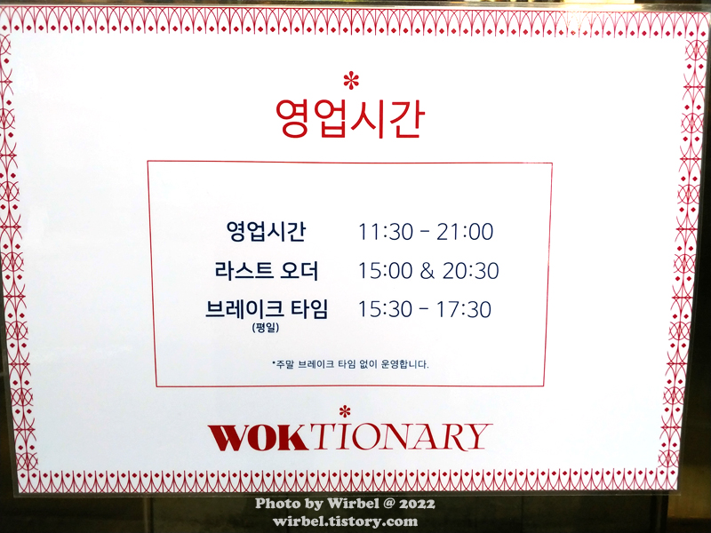 상호: 웍셔너리 / Woktionary 전화번호: 070-8888-9878 영업시간: 11:30 ~ 21:00 (평일 Break Time 15:30 ~ 17:30) (Last ORder 15:00, 20:30) 주소: 서울 강남구 도산대로53길 12 1층 (서울 강남구 신사동 666-22 1층) 주차: 발렛파킹 (발렛파킹비 별도) 웍셔너리 인스타그램: https://www.instagram.com/woktionary/ |