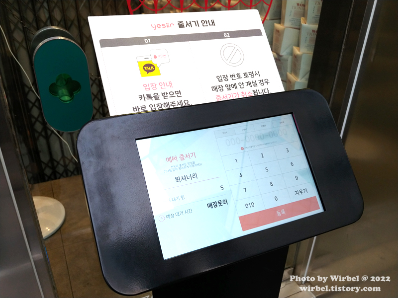 압구정 웍셔너리 웨이팅 시스템으로 예써(Yesir)를 사용하고 있습니다.