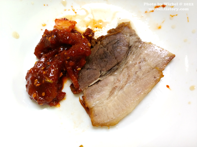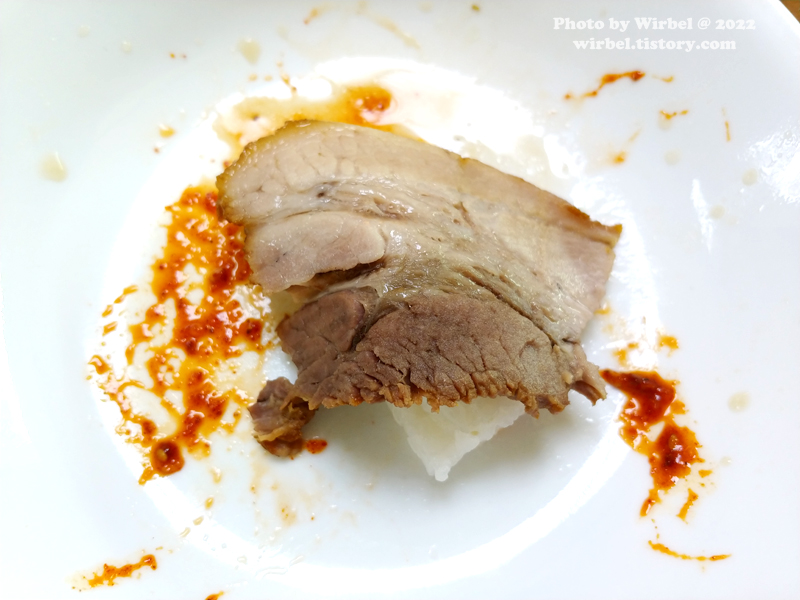 돼지고기 수육이 진한 갈색을 띠고 있는데 생각 외로 엄청 부드럽습니다.