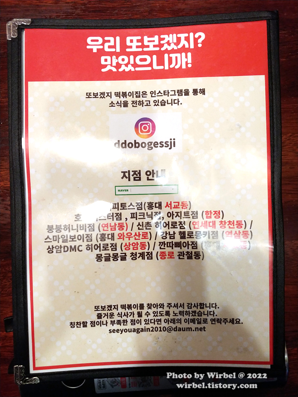 또보겠지 떡볶이집은 홍대 근처에 매장이 많이 있습니다.
